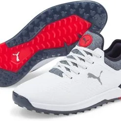 PUMA Men’s Proadapt Alphacat Golf Shoe – Puma White/Navy Blazer/High Risk Red