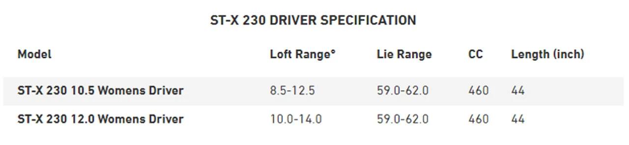 The Mizuno ST-X 230 Ladies Driver is a draw-biased carbon composite construction aided by a heel side sole weight. Built upon the 2nd generation of Mizuno’s Forged SAT2041 Beta Ti face – for potent ball speeds and consistent performance over time. Slower swing speeds will benefit from the J-Spec – incorporating an incredibly lightweight 39g MFusion graphite shaft.