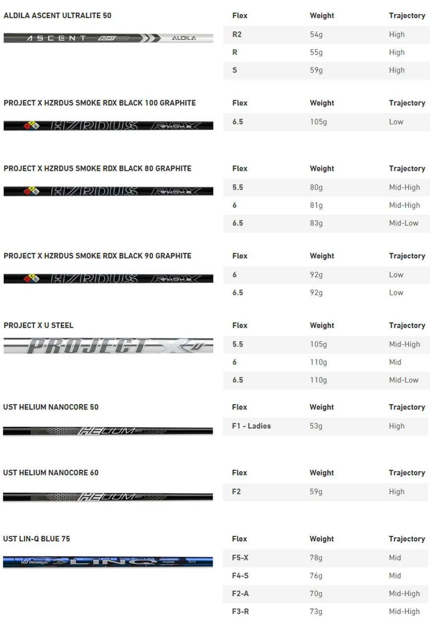 - Available Premium Shafts (at zero up-charge) :