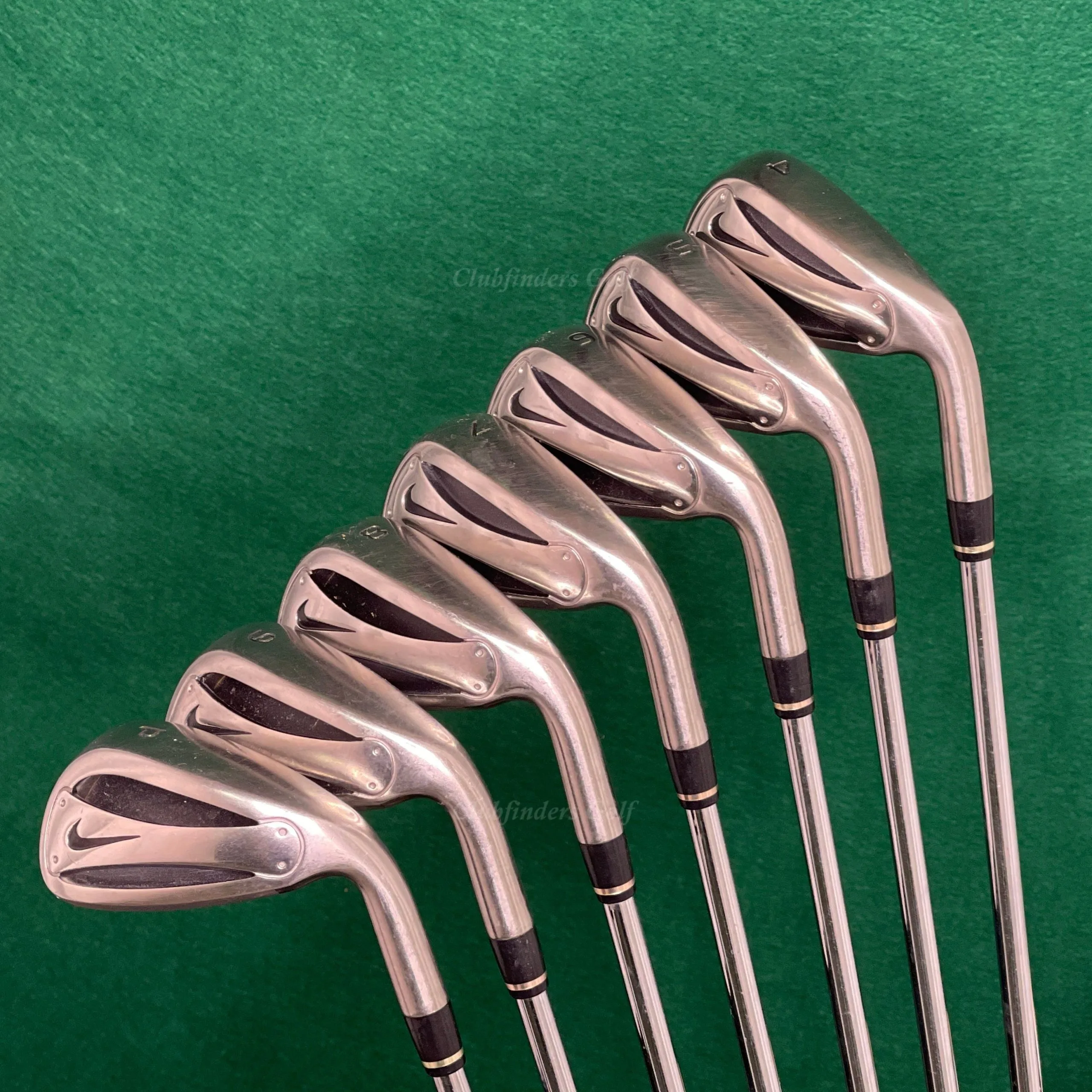 SKU: 8219472036080 Category: Iron Set Tags: Brand:Nike, Category:Clubs, Clubtype:Iron Set, Condition_rating:7.5, Dexterity:Right-Handed, Flex:Regular, Gender:Men, Grip_size:Standard, Grip:Factory Nike Slingshot Velvet, Length:38" (5 Iron), Lie:Standard, Material:Steel, Model:Slingshot 2010, Set_makeup:4-PW, Shaft_model:Factory True Temper