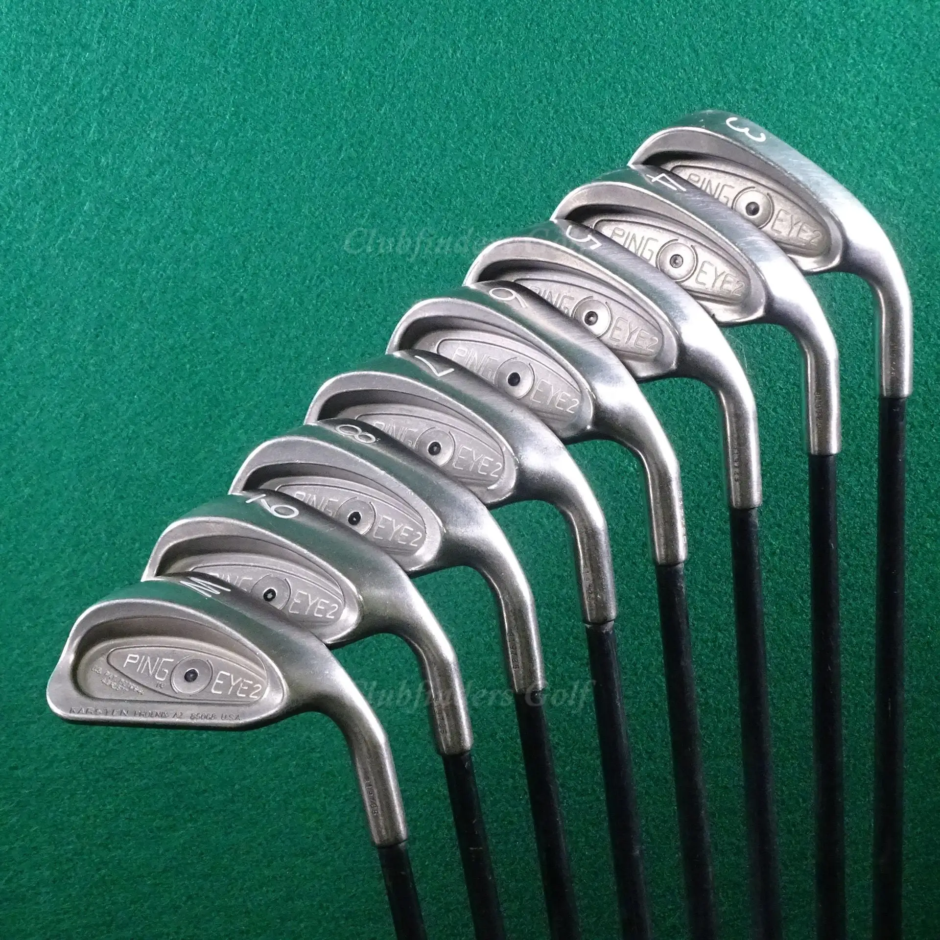 SKU: 8230284689648 Category: Iron Set Tags: Brand:Ping, Category:Clubs, Clubtype:Iron Set, Condition_rating:7, Dexterity:Right-Handed, Flex:Regular, Gender:Men, Grip_size:Midsize, Grip:Golf Pride Tour Wrap, Length:38" (5 Iron), Lie:Standard, Material:Graphite, Model:Eye 2 Black Dot, Set_makeup:3-PW, Shaft_model:Aldila Low Torque